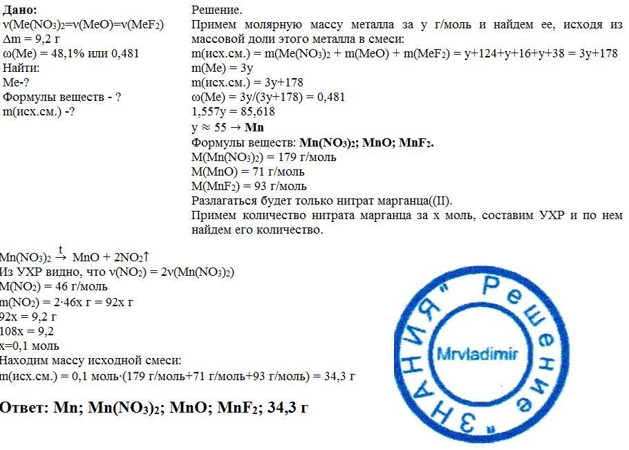 Ответ: Mn; Mn(NO₃)₂; MnO; MnF₂; 34,3 г
