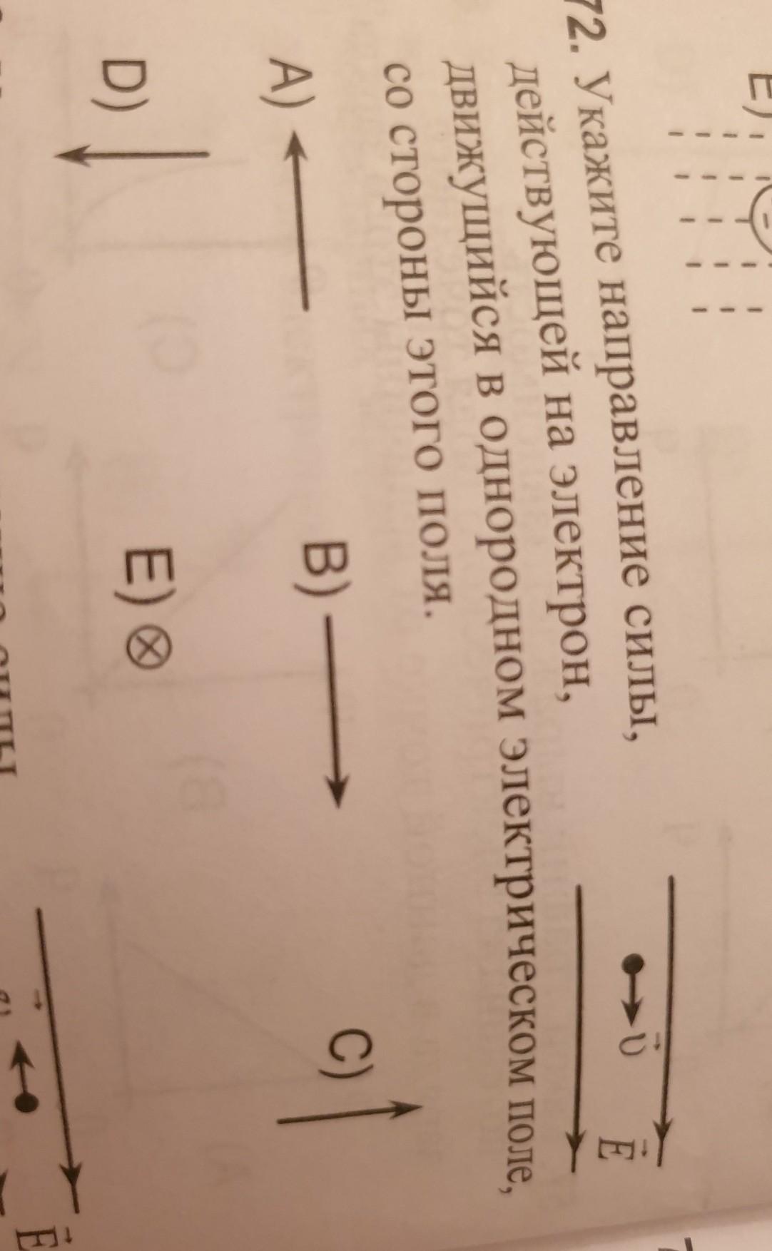 Направление вектра Е совпадает с направлением силы действующей на положительный заряд. Так как электрон отрицательно заряженная частица Выбираем А)