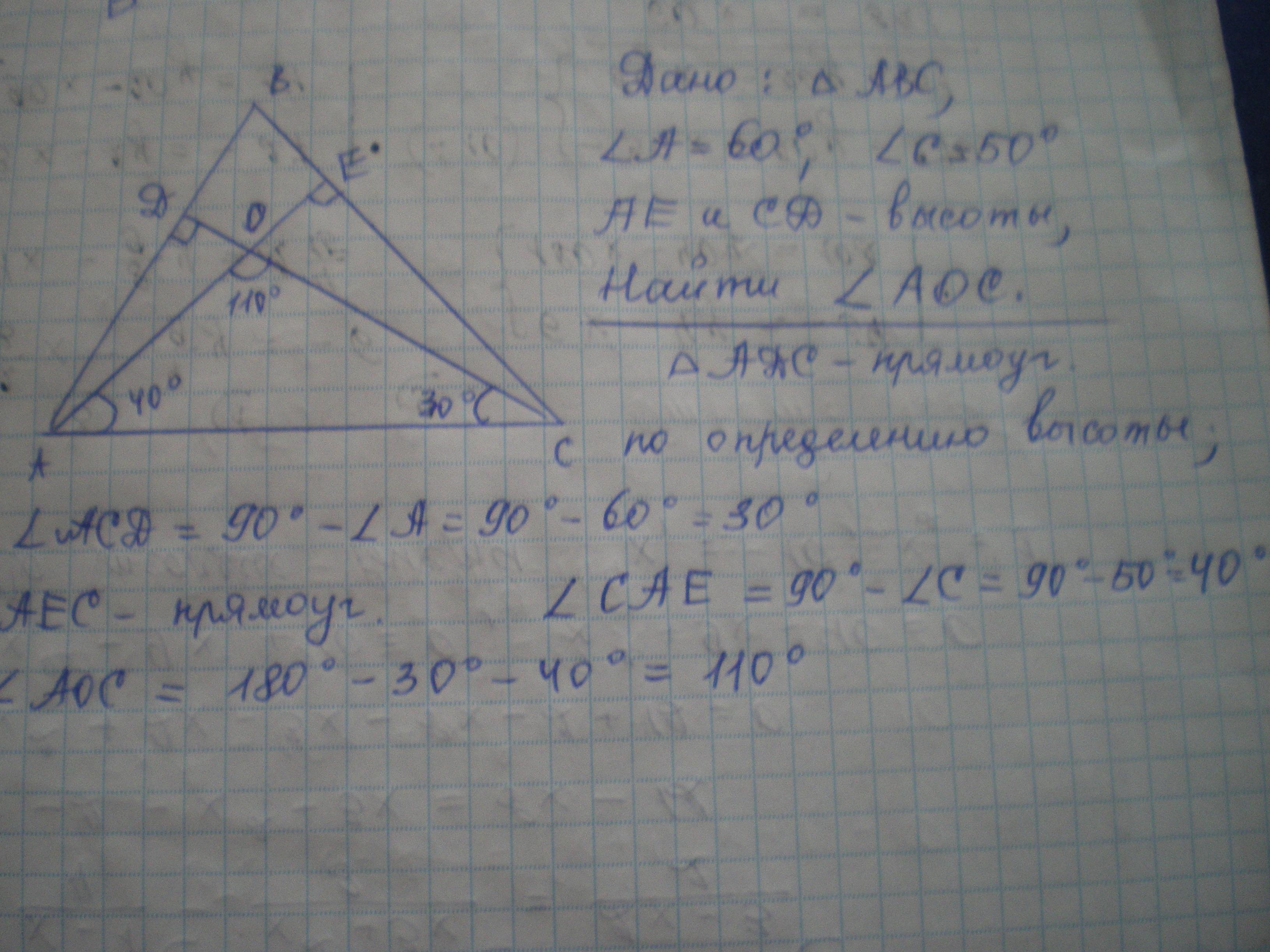 каким углом пересекаются высоты AE и CD?