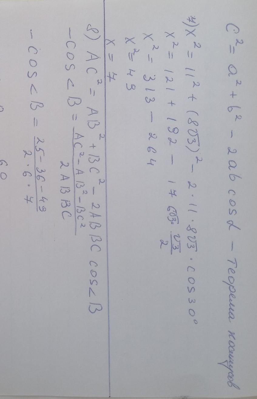x^2=11^2+(8V3)^2-2*11*8V3*cos30=121+192-88V3=313-264=49