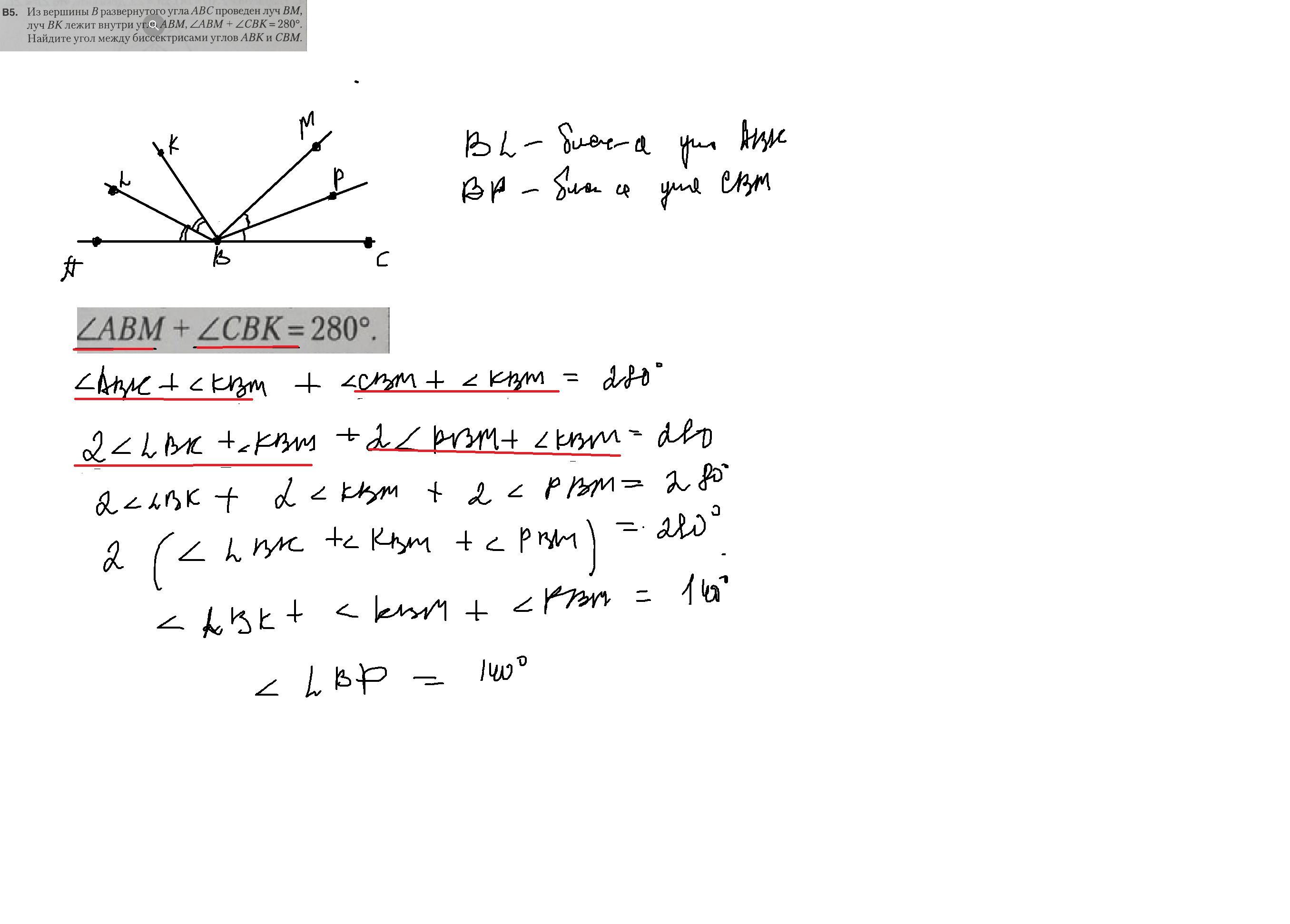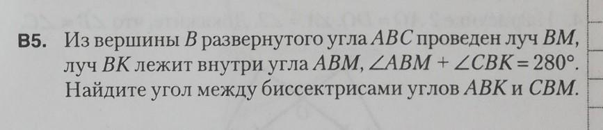 Найдите угол между биссектрисами углов ABK и CBM