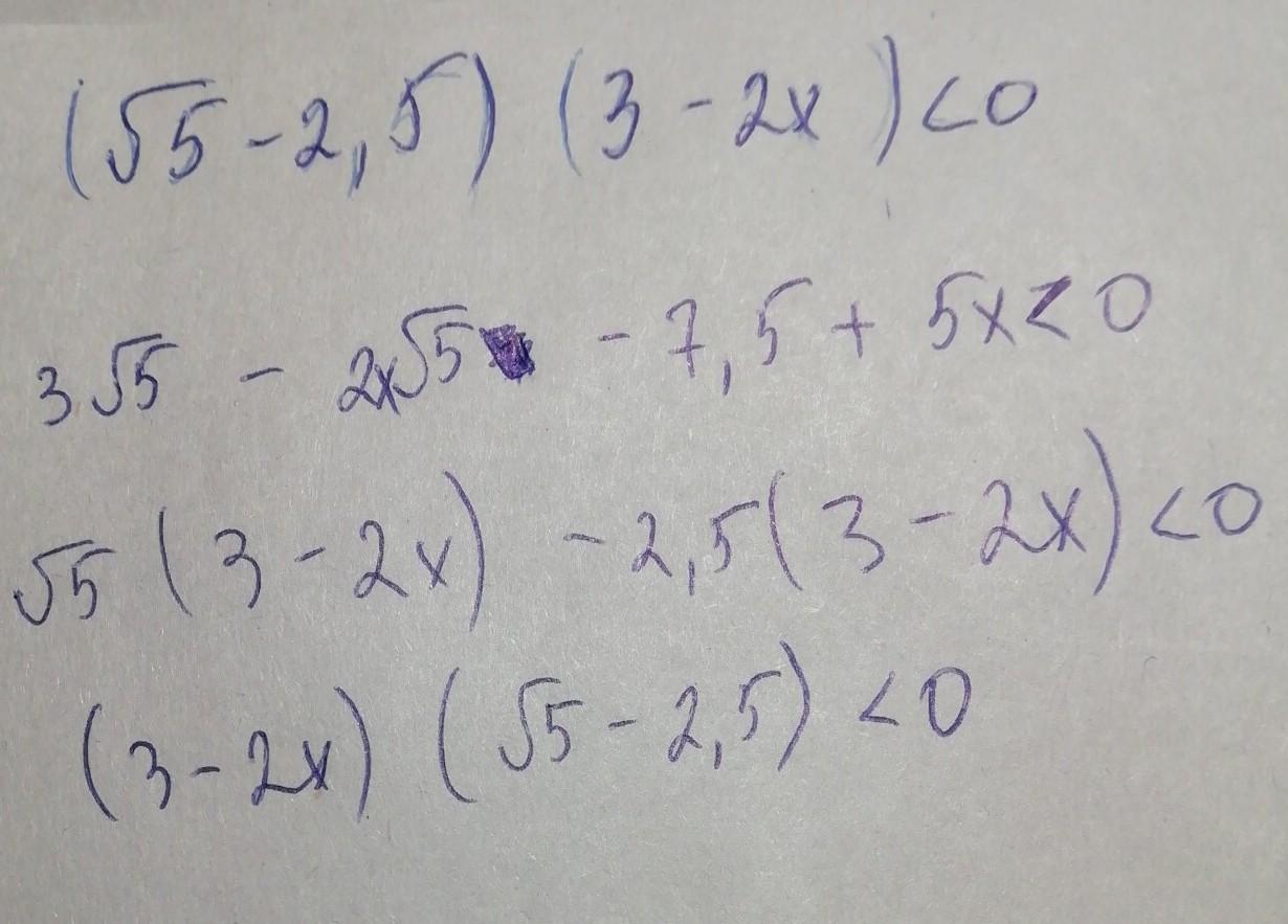 (корень из 5 - 2,5) < 0 и значит при делении знак неравенства надо поменять