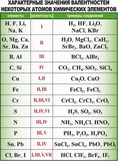 Валентность -- это количество электронных пар(связей), которые образует или может образовать какой-либо элемент. Высшая валентность элементов главных подгрупп с некоторыми исключениями совпадает с номером группы. Многие элементы имеют несколько разных валентностей, в зависимости от энергетического состояния.