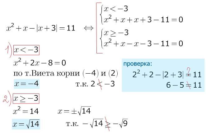 Как решить уравнение с модулем X^2+X-abc(x+3)=11