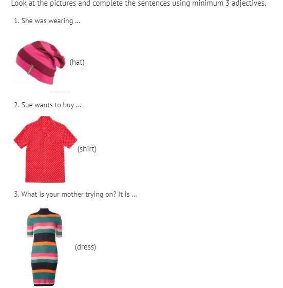 Look at the pictures and complete the sentences using minimum 3 adjectives.