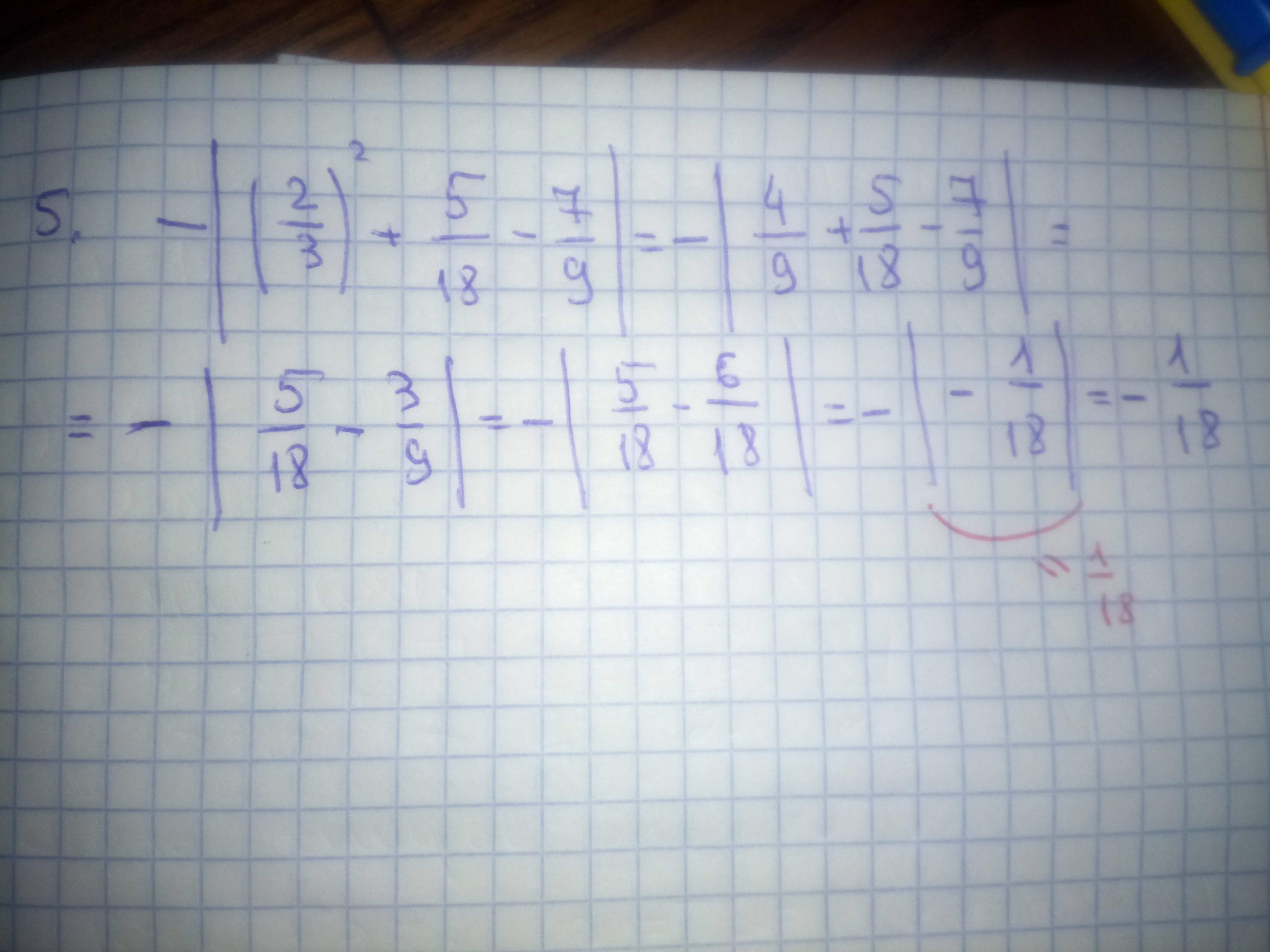 5) -| 8/18+5/18-14/18|=-| -1/18|= -1/18