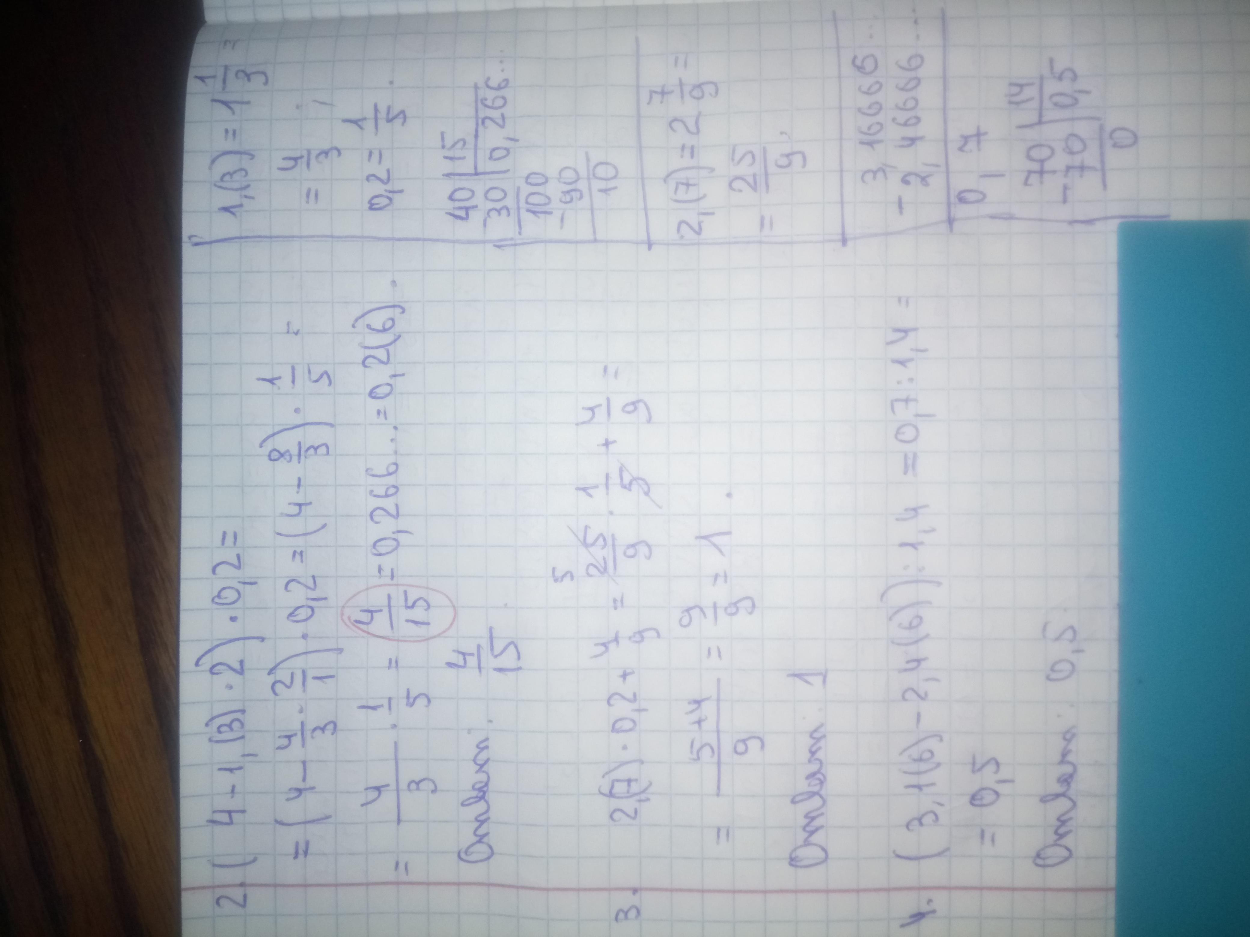 4) Если вы распишите дроби, то увидите, что 3,1(6)-2,4(6)=0,7, значит 0,7:1,4=0,5