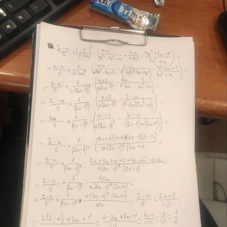 4). (2-a)/5 +(2a+1)/2=(2(2-a)+5(2a+1))/10=(4-2a+10a+5)/10=(9+8a)/10=(9+8*(-3,2746))/10=(9-26,1968)/10=-17,1968/10=-1,71968
