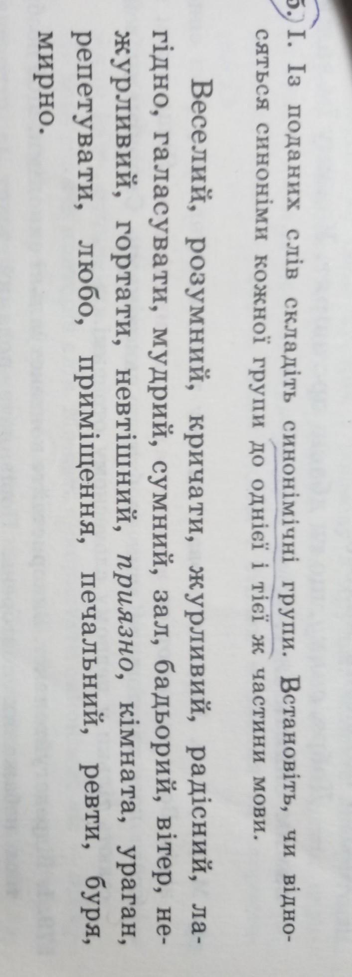 Синоніми в кожній групі належать до однієї частини мови.