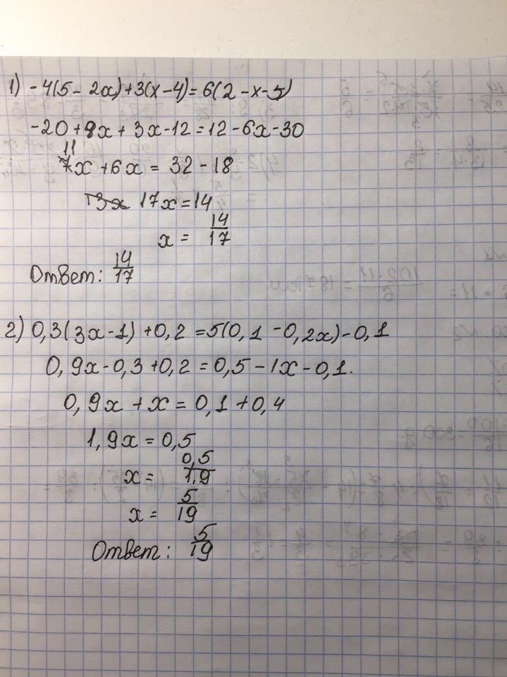 2)0.3(3x-1)+0.2=5(0.1-0.2x)-0.1