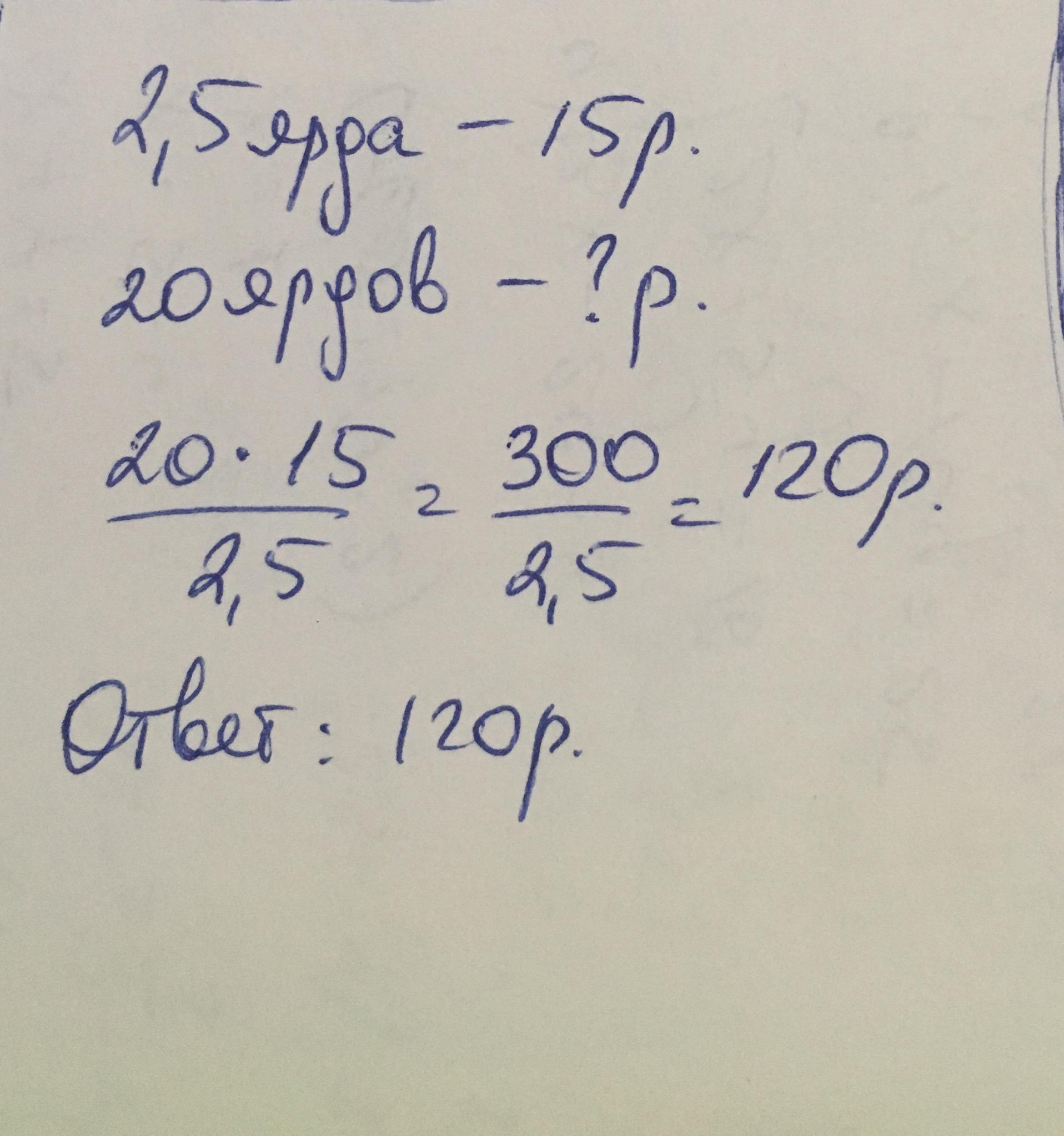 1) 20 : 2,5 = 8 частей, стоящих по 15 рублей каждая, находится в 20 ярдах.