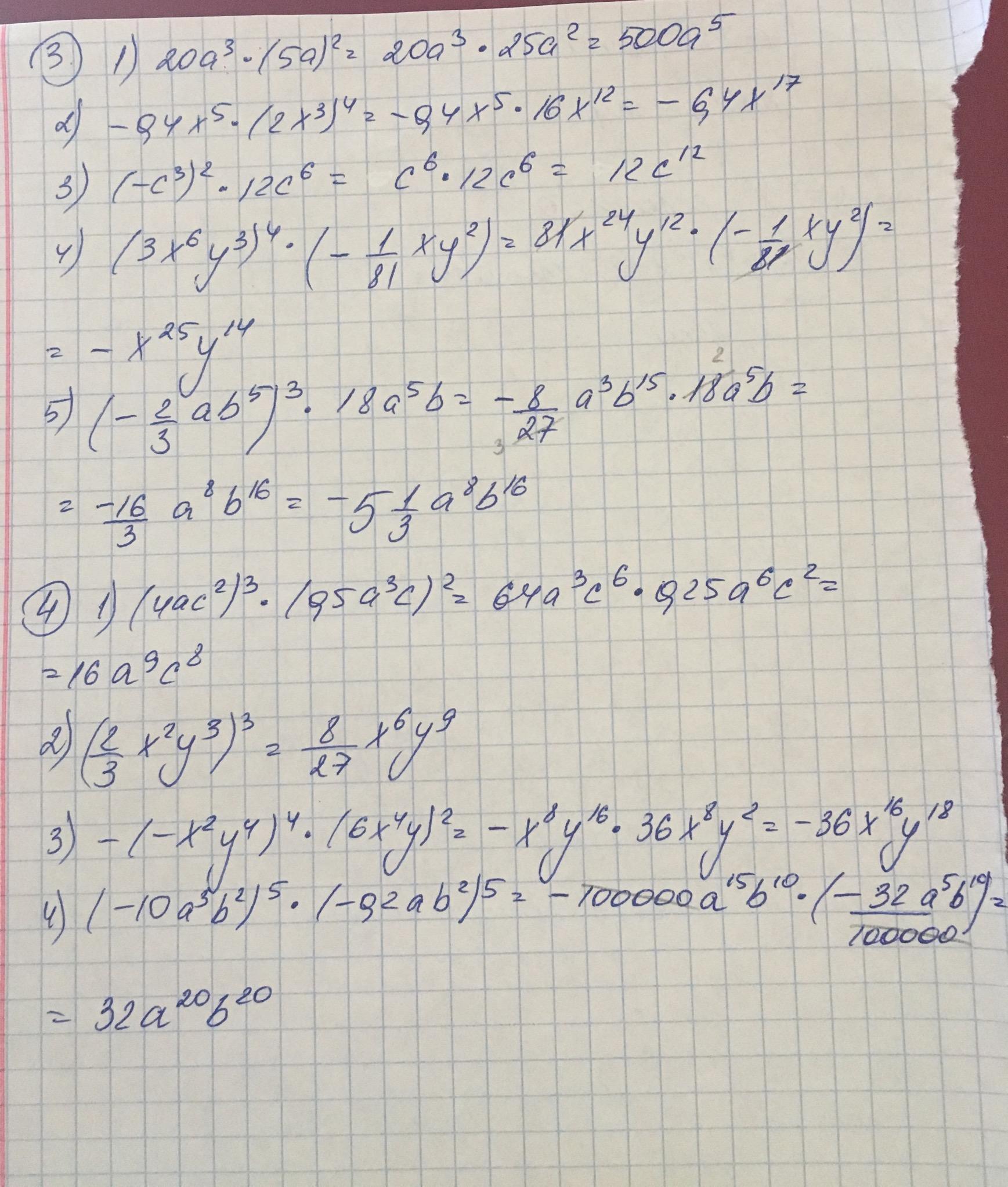 4. 1)16a^9c^8; 2)(8/27)x^6y^9; 3)-36x^16y^18; 4)32a^20b^20