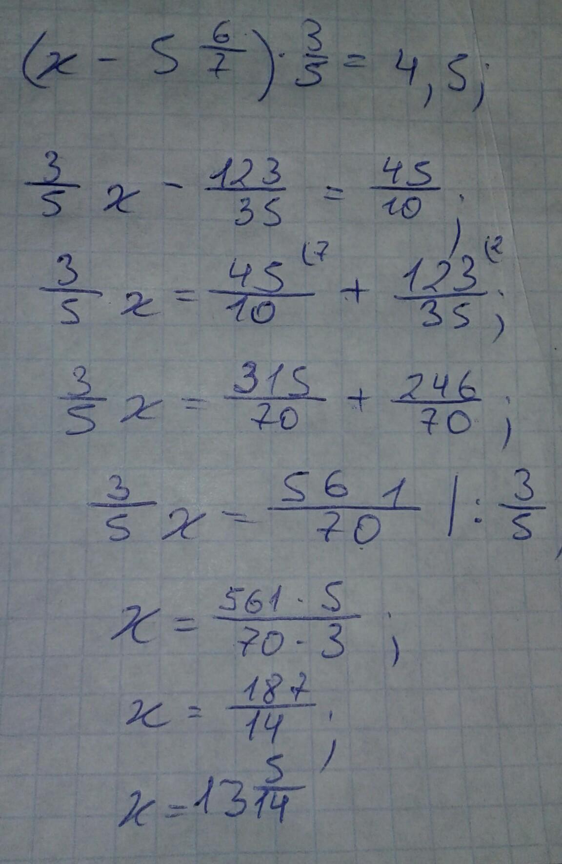 (13 5/14 - 5 6/7) • 3/5 = 4,5 - верно.