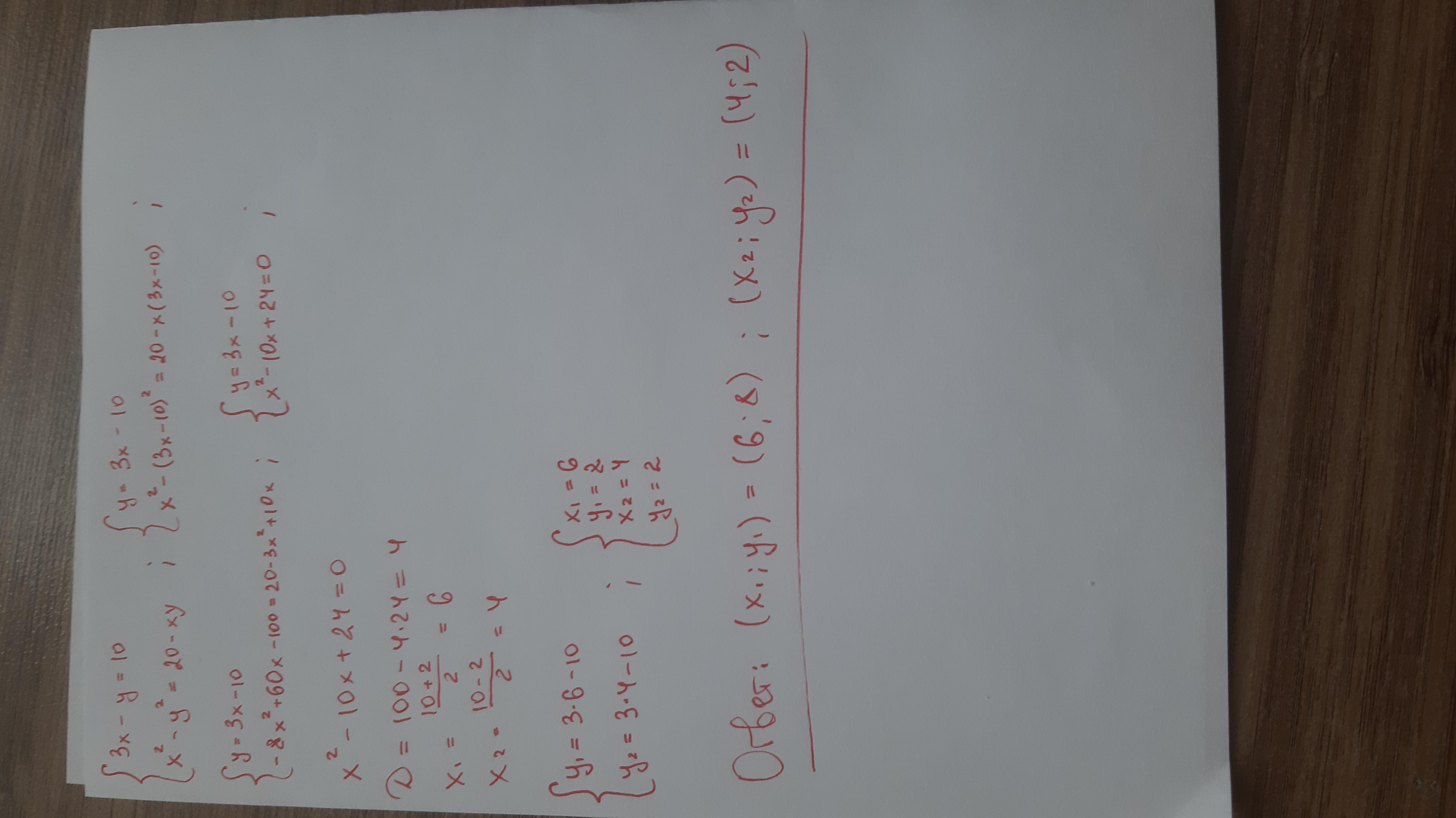 Прочто выразить у через х в первом уравнении и подставить во второе