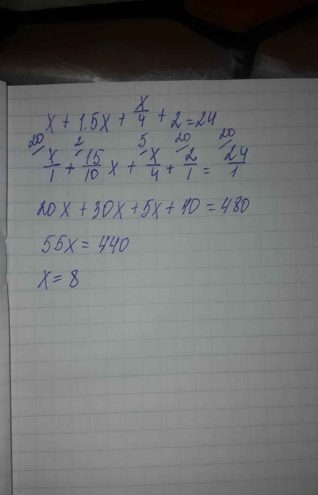 х+1.5х+х/4+2=24