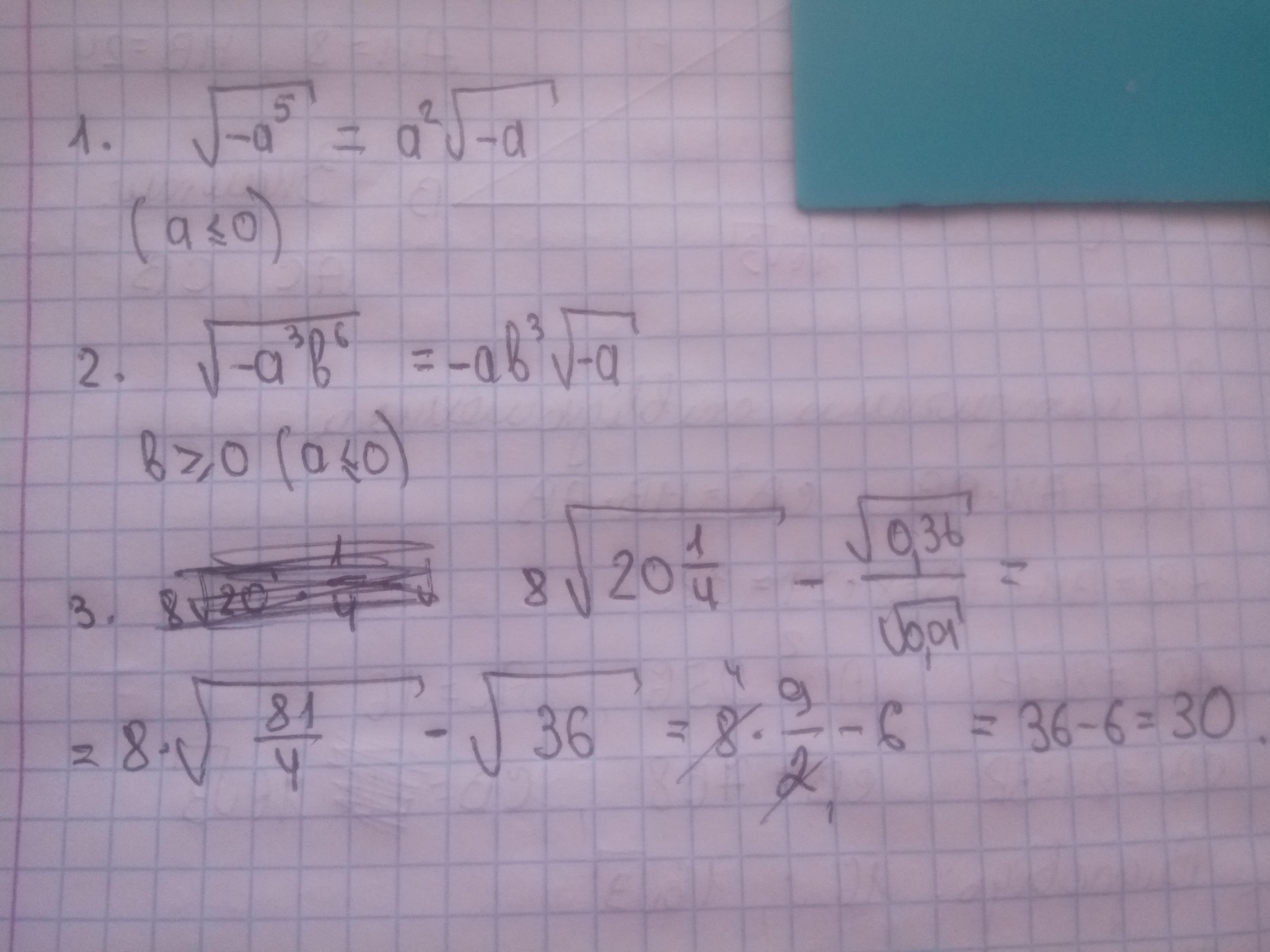 вынесите множитель из под знака корня 1. √-а5 2.√-а3 b6 при b≥0