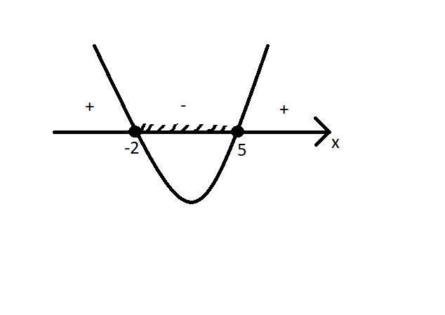 Ответ: х∈[-2;5]