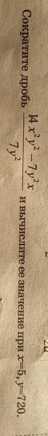 сократите дробь 14x^2 y^2-7y^2 x/7y^2 и вычислите её значение при x=5, y=720