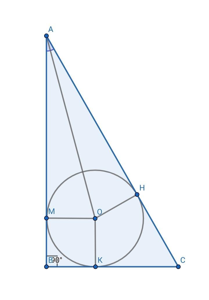 В ΔМАО: tg(α/2) = MO/AM ⇒ MO = r•tg(α/2), но OM⊥AB, OK⊥BC, MO = OK = r, поэтому МВКО - квадрат, МВ = ВК = r, AB = AM + BK = r•tg(α/2) + r = r•( tg(α/2) + 1)