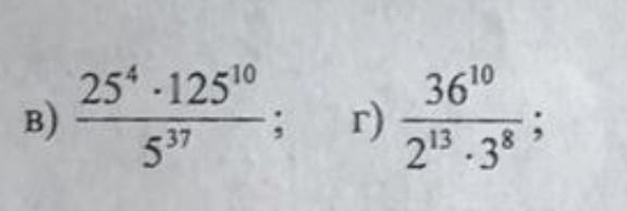 б) 36¹⁰/(2¹³*3⁸)=6²⁰/(2⁸*3⁸*2⁵)=6²⁰/(6⁸*2⁵)=6¹²/2⁵=(2*3)¹²/2⁵=2¹²*3¹²/2⁵=2⁷*3¹²