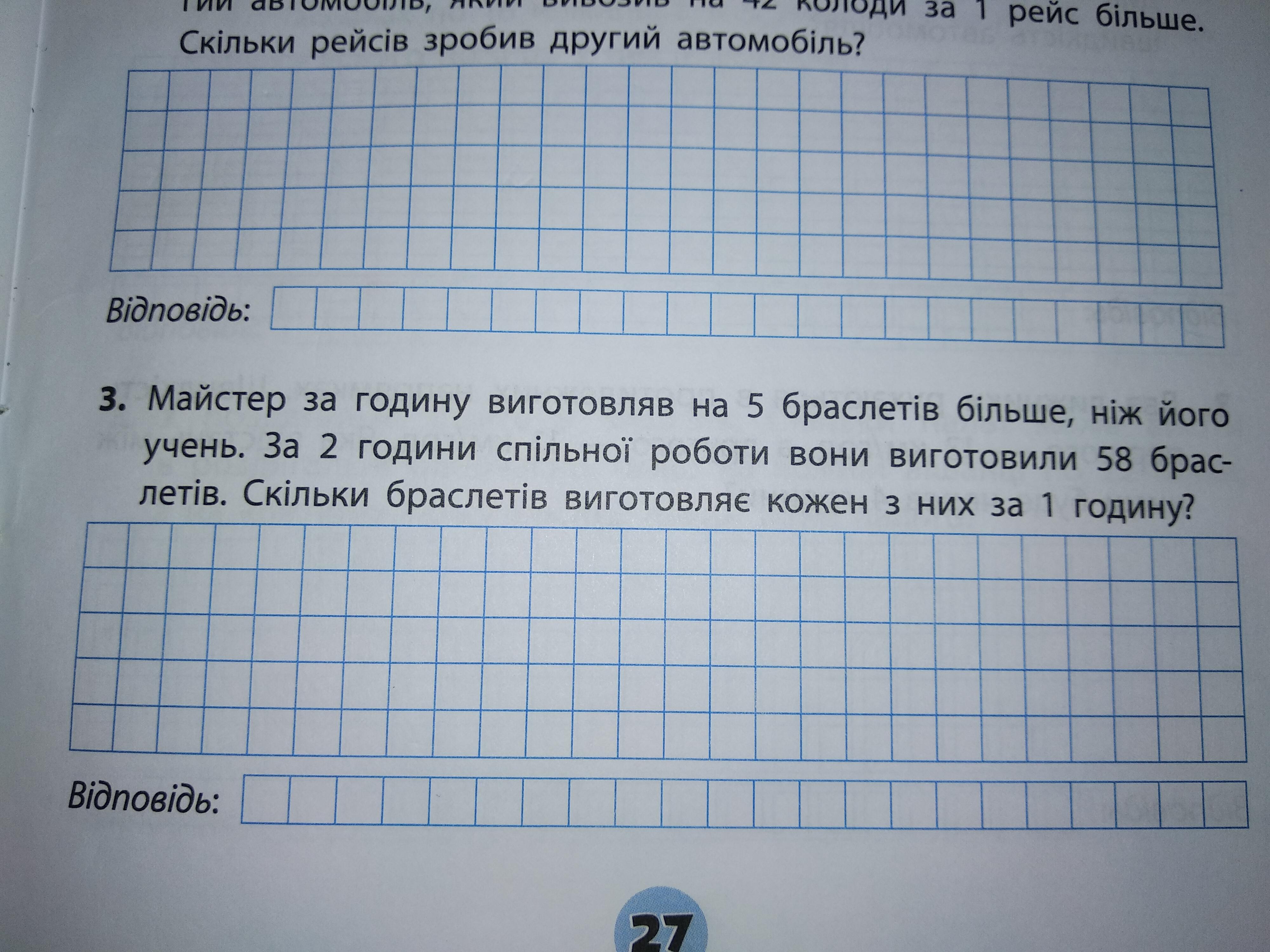 Учень за 1 годину виготовляє 12 браслетів, майстер за 1 годину виготовляє 12+5=17 браслетів.