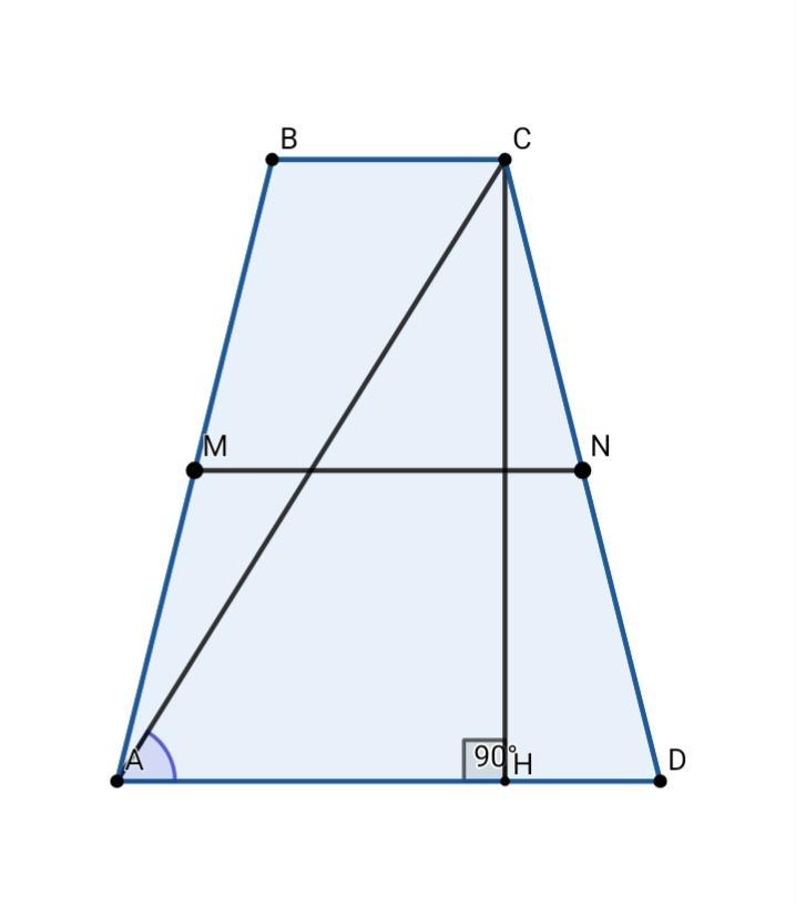 Высота равнобедренной трапеции делит большее основание на два отрезка, больший из которых равен полусумме оснований, а меньший равен полуразности оснований. Полуссумма оснований - это как раз средняя линия трапеции, поэтому АН = МN. B ΔACH: cos60° = AH/AC, AH = AC•cos60° = 12•0,5 = 6 см = MN