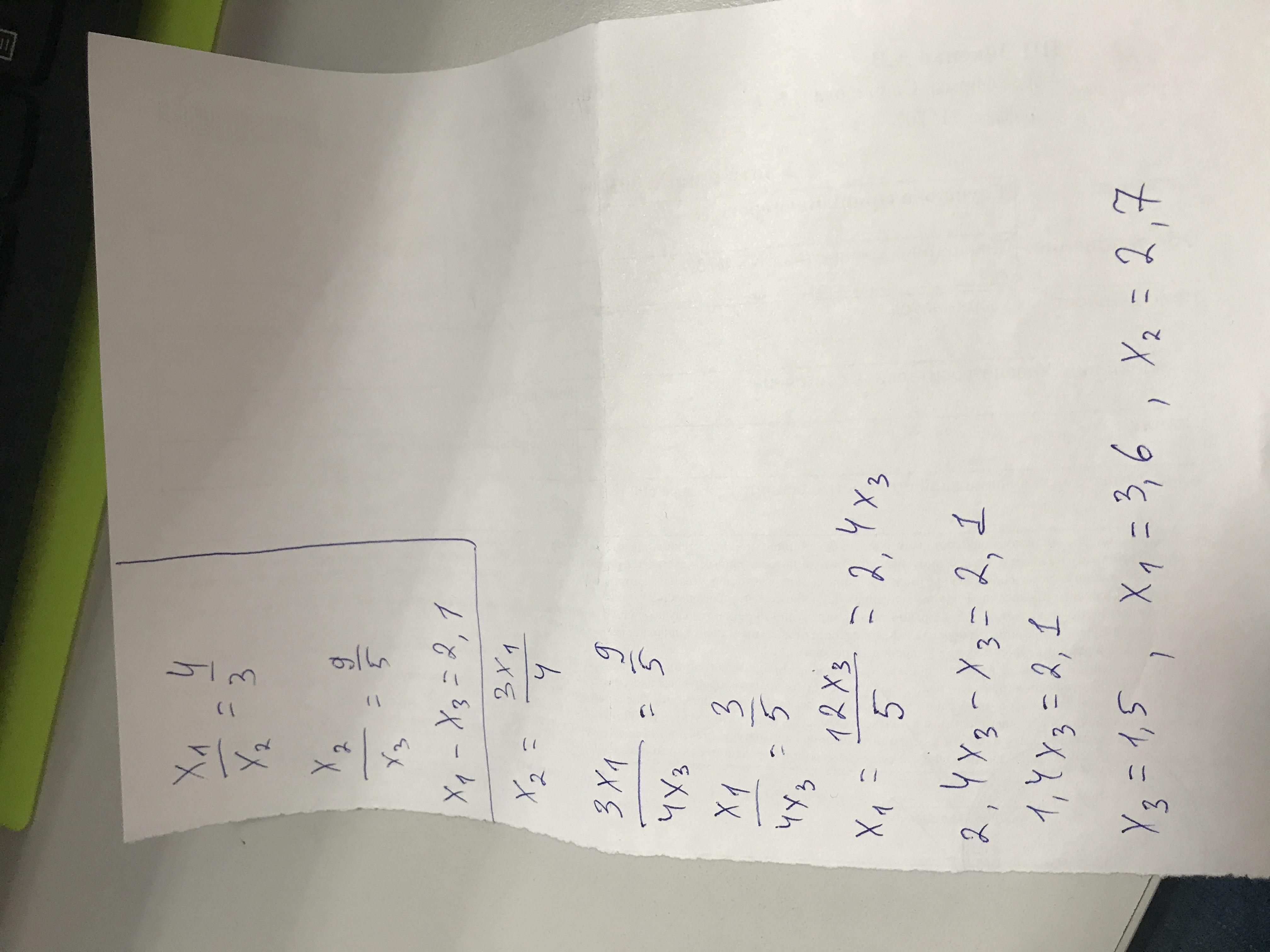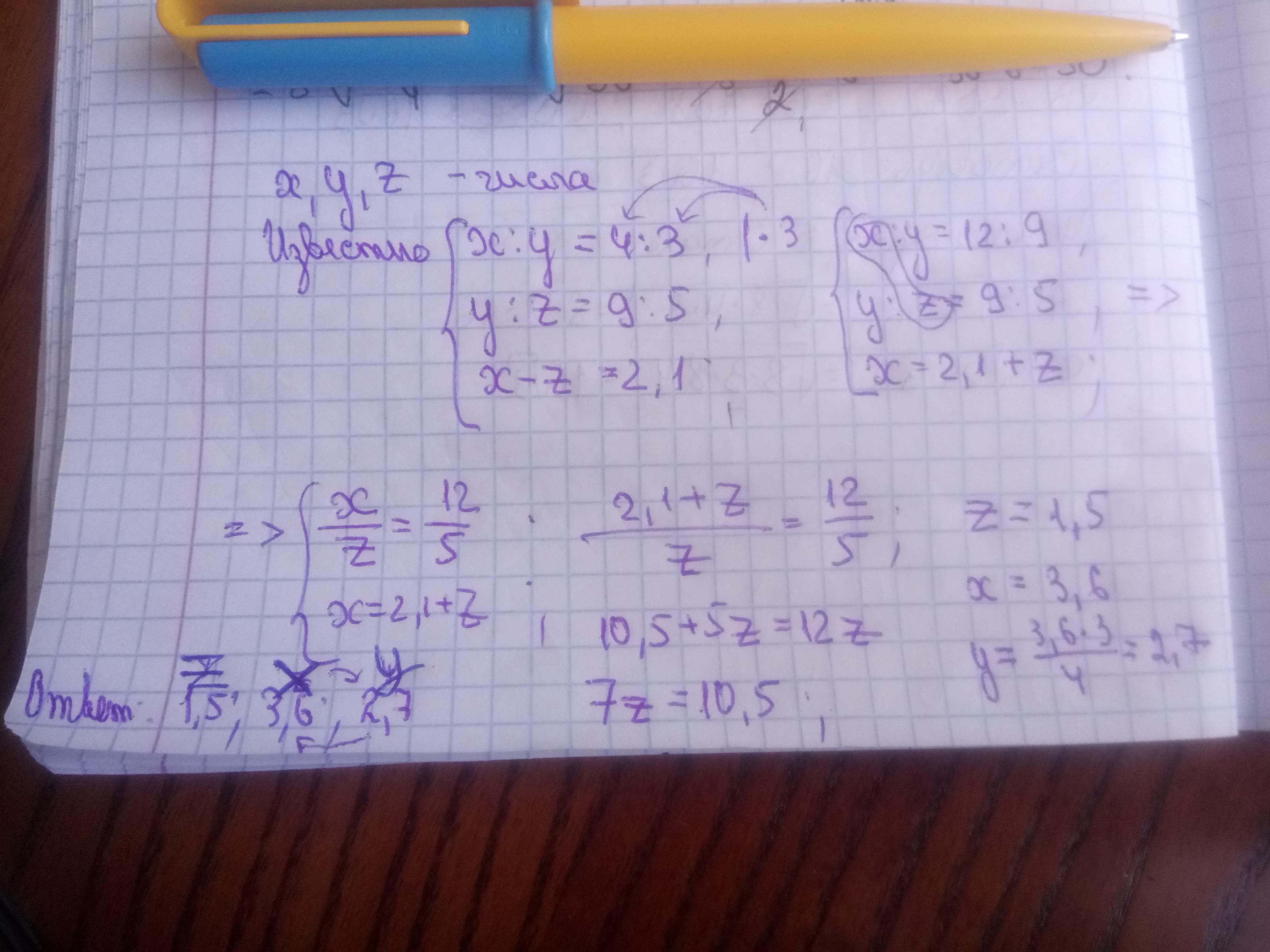 второму как 4 : 3, второе к третьему – как 9 : 5, а разность первого и