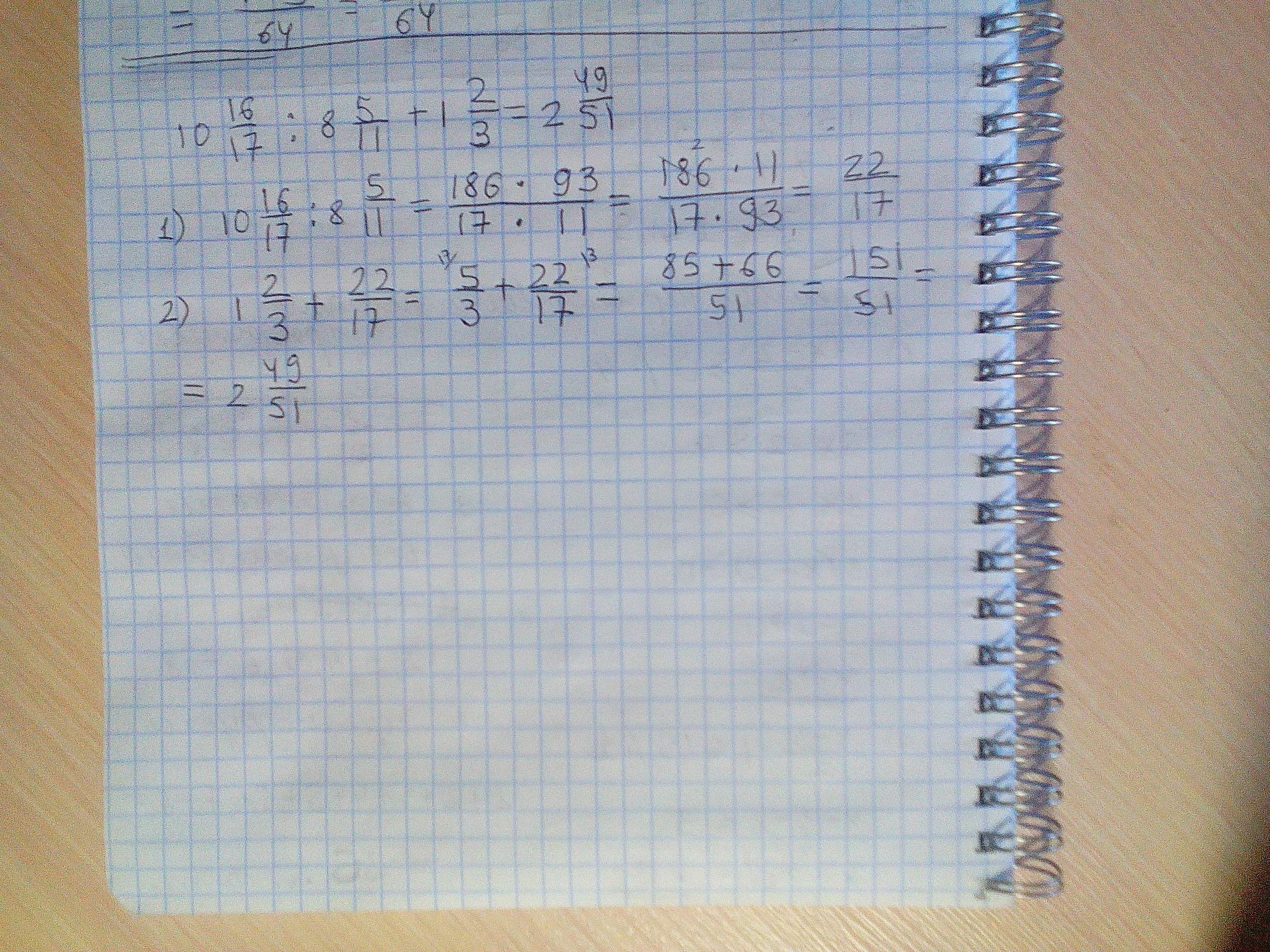 186/17 : 93/11 +5/3= 186/17* 11/93 +5/3= 22/17+5/3= 66/51 +85/51= 151/51= 2 49/51