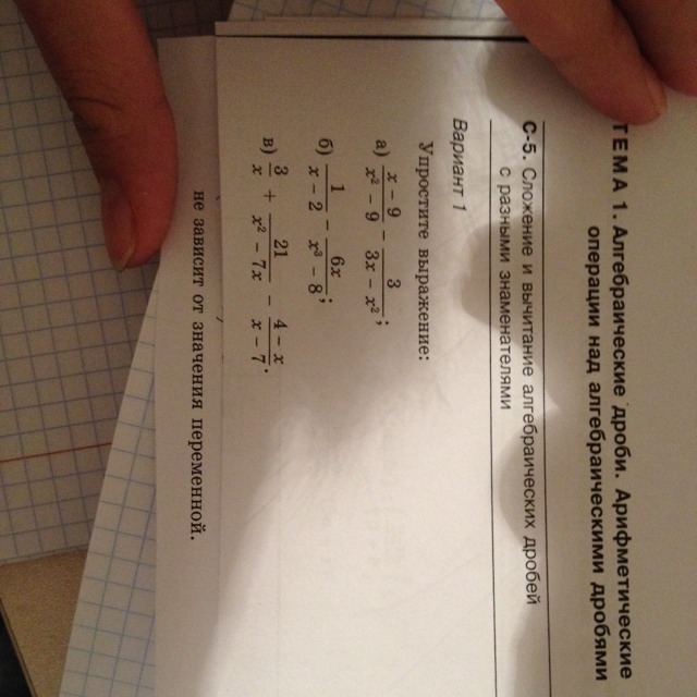 Помогите пожалуйста решить : сложение и вычитание алгебраических дробей с разными знаменателями