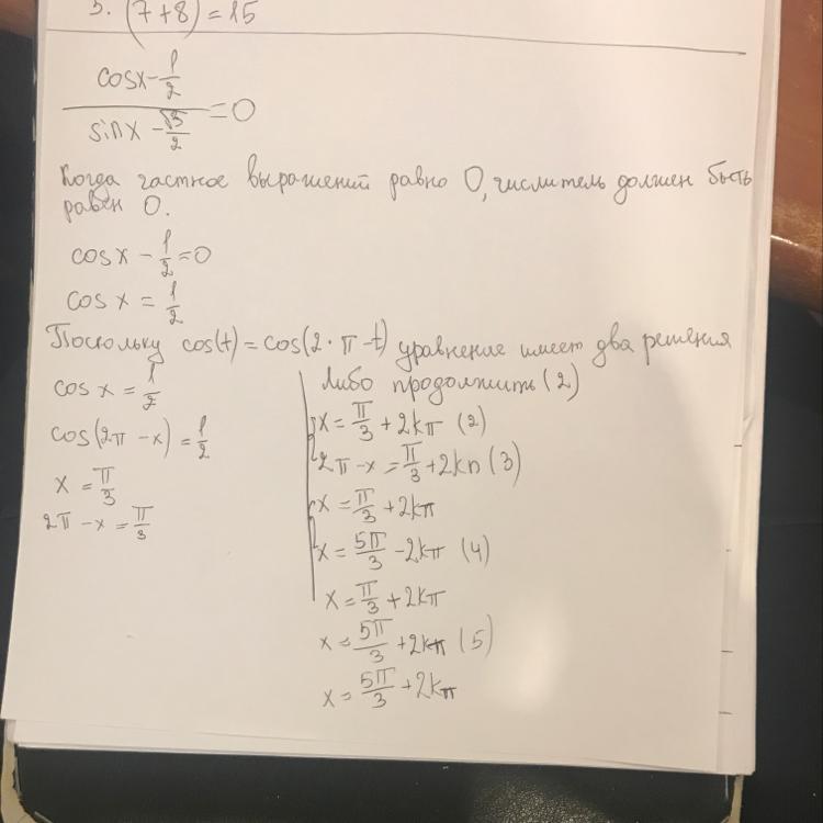 (3) поскольку cos(x) является переодической функцией, нужно добавить период 2kп, k->z для нахождения всех решений.