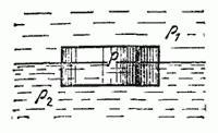 Если мысленно заменить часть объема шайбы, погруженную в жидкость плотностью ρ1 самой этой жидкостью, и то же самое проделать с другой частью шайбы, то, очевидно, жидкость будет находиться в равновесии. Следовательно, мы вправе записать: FA=(Sh1ρ1+Sh2ρ2)G, (2) где S — площадь сечения шайбы, ρ2h2S — масса жидкости, заменяющая нижнюю часть шайбы, ρ1h1S - верхнюю, правая часть (2) — вес жидкости, вытесненной телом (шайбой).