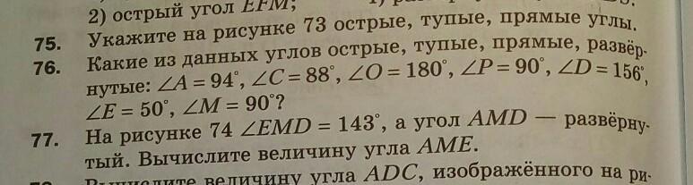 75. Острые - меньше 90, прямой = 90, тупые - больше 90.