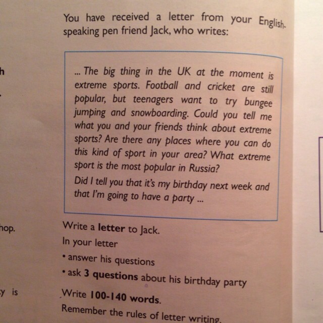 In your letter you told me about extreme sports.