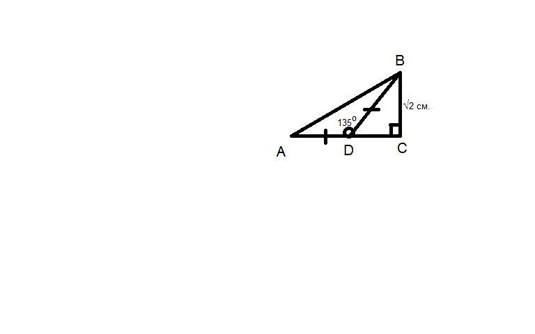 CD = BC = √2 см, тогда BD = CD√2 = √2 · √2 = 2 см