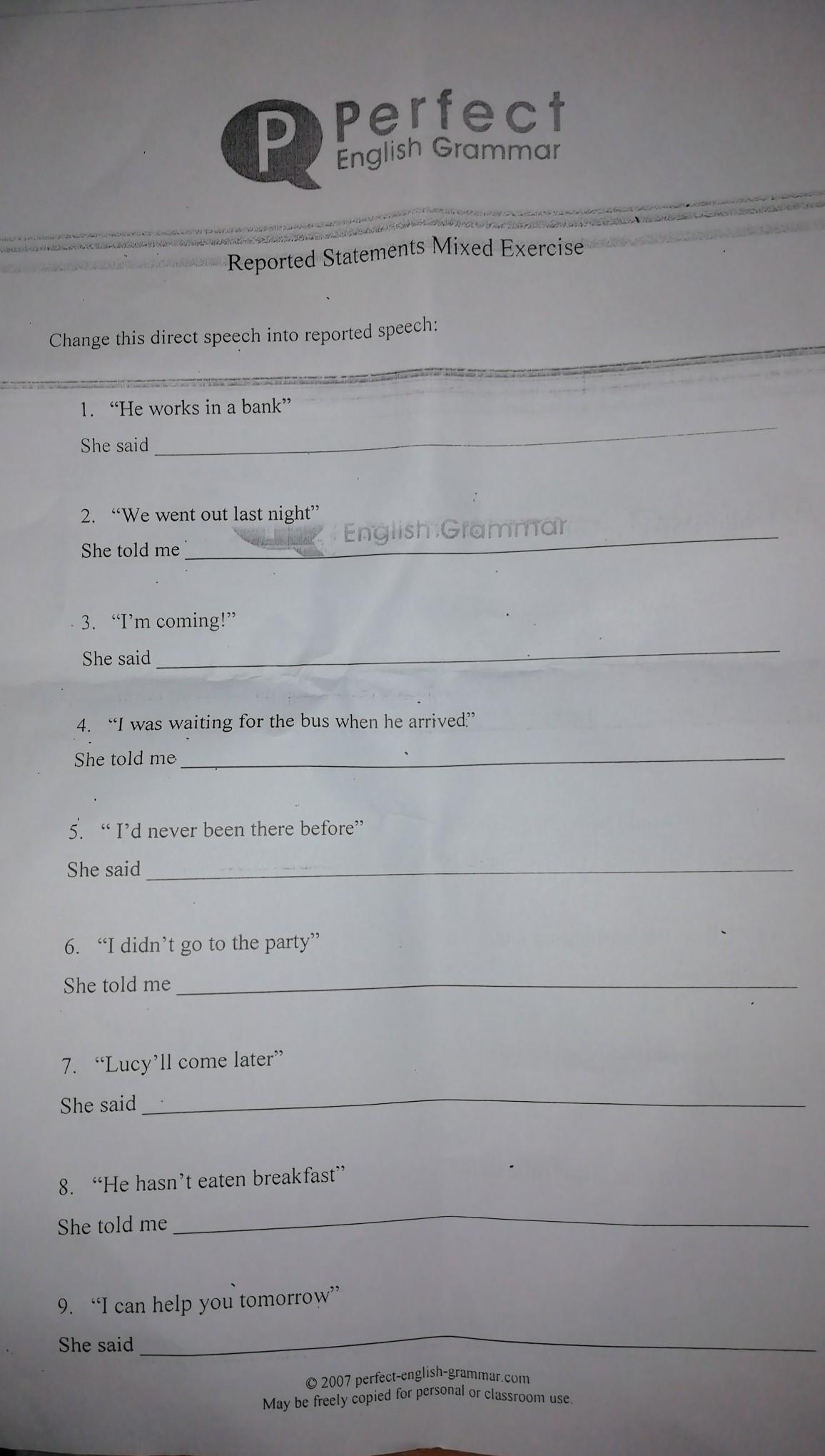 1. She said (that) he worked in a bank.