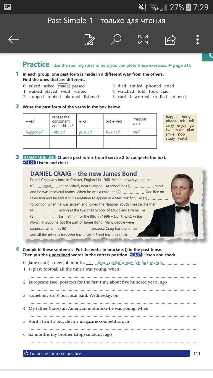 + -ed: enjoyed, happened, watched