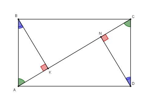 AB = CD, следовательно, ΔABK = ΔCND по гипотенузе и острому углу