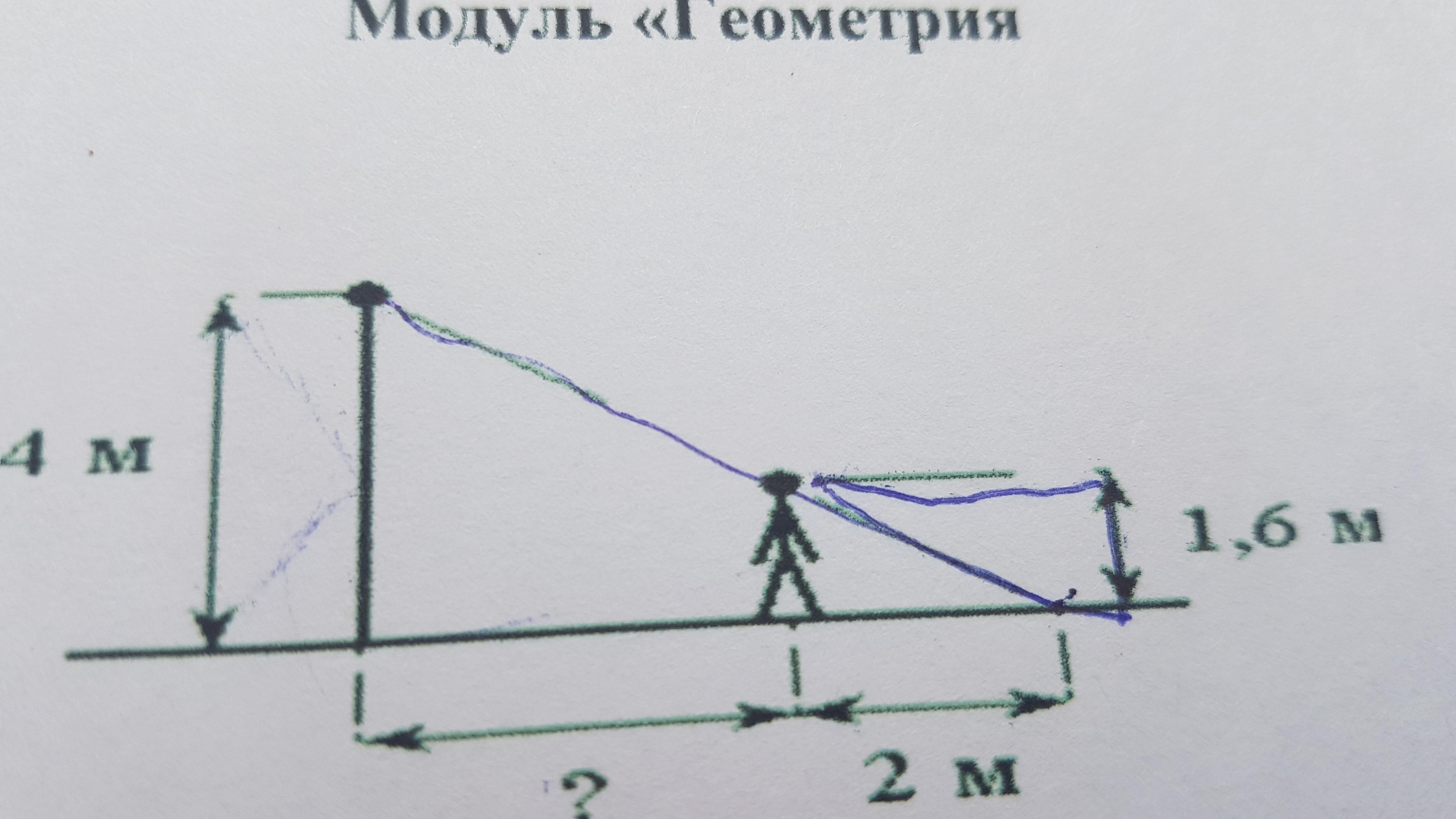 Самое главное, не запутаться с нижней стороной, соотносим 2 и 2+х как расстояние до человека к расстоянию до столба, аналогично с ростом человека и высотой столба