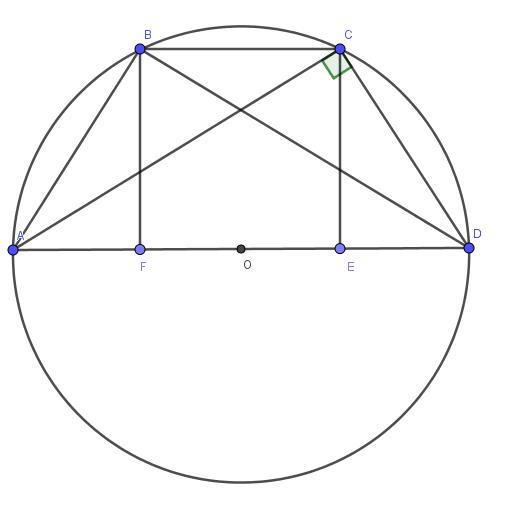 Поскольку диагонали перпендикулярны к боковой стороне, то ∠ABD и ∠ACD опираются на диаметр AD, следовательно, центр окружности лежит на середине AD