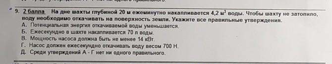 Г-потму что чтобы не затопливало нужно как минимум 700 Н ведь поступает 70л или 0.07 м³ высчитываем вес F=mg=ρVg=0,7×1000×10=700 Н как минимум