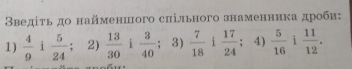1) 4/9 і 5/24 =4*8/72 і 5*3/72=32/72 і 15/72