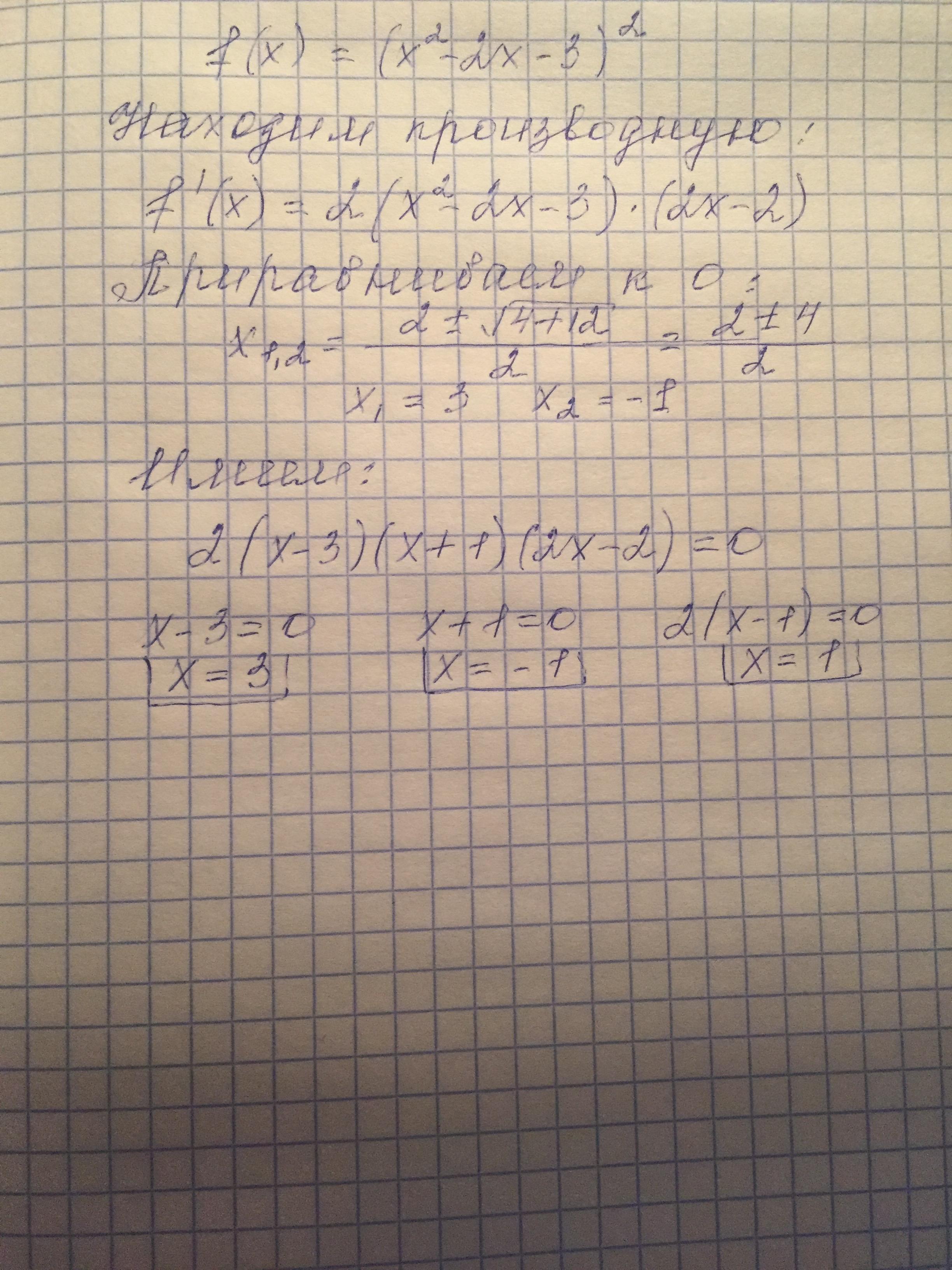 найдите критические точки функции f(x)=(х^2-2х-3)^2
