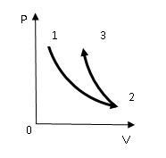 Переход некоторой массы газа из состояния 1 в состояние 3 состоит из двух процессов – адиабатического и изотермического (рис. 1). Какому из указанных процессов соответствует процесс 2 – 3 на диаграмме P – V.