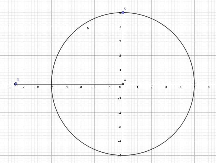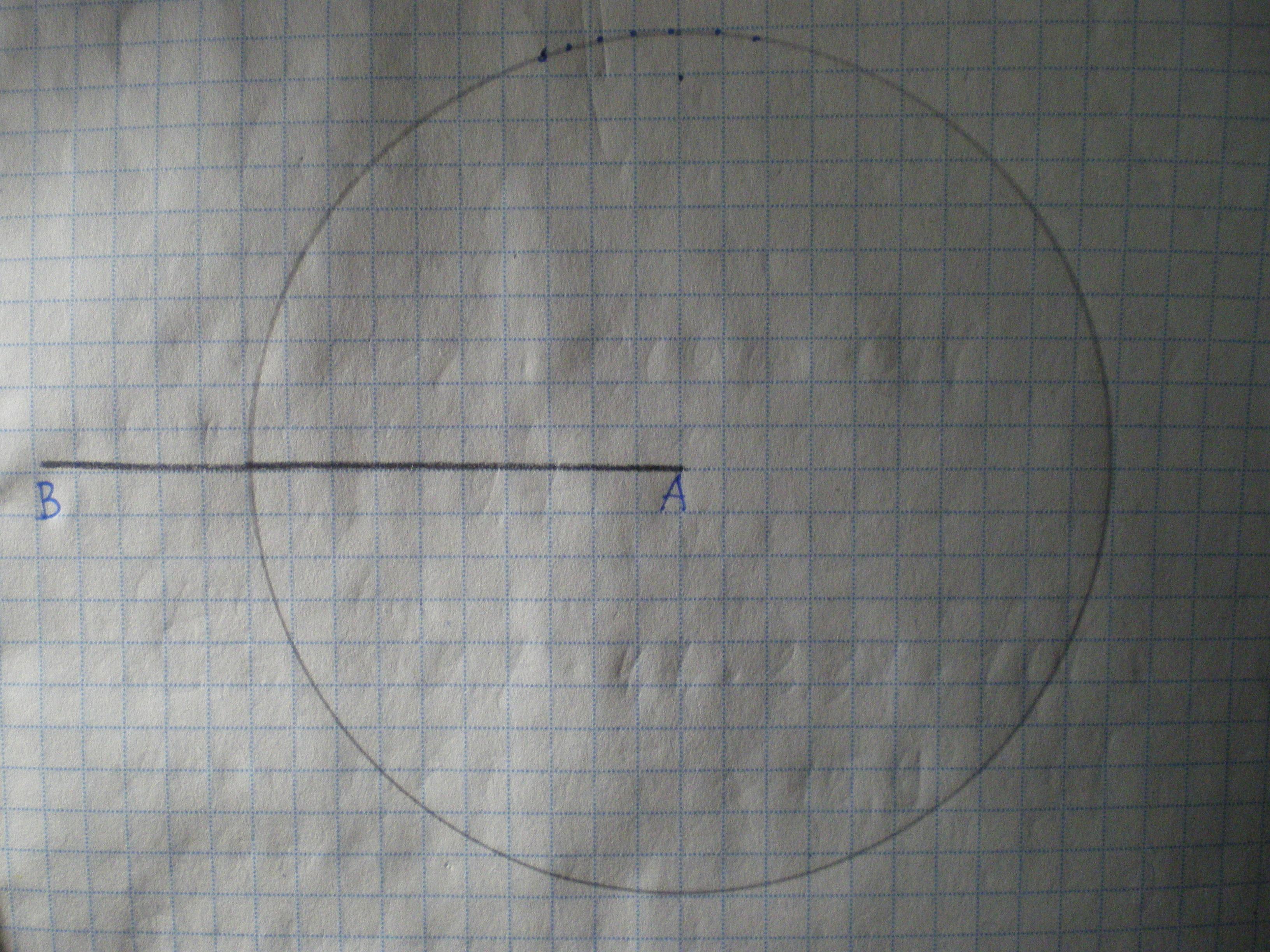 Дан отрезок AB. Найди все точки, которые находятся от точки A на расстоянии, равном 5 см. Выделите эти точки маркером. Используйте при построении задачи окружность.