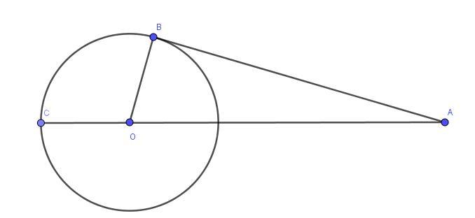 Радиус окружности, проведённый в точку касания, перпендикулярен касательной, т.е. ∠OBA = 90°. Из прямоугольного треугольника AOB по теореме Пифагора