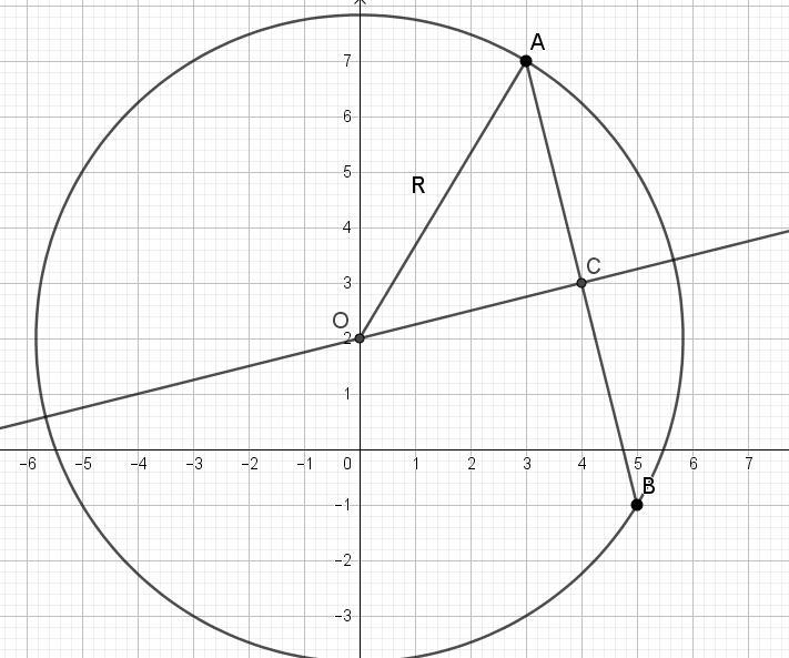 Даны точки А(3; 7) и В(5; -1). Центр окружности на оси ординат.