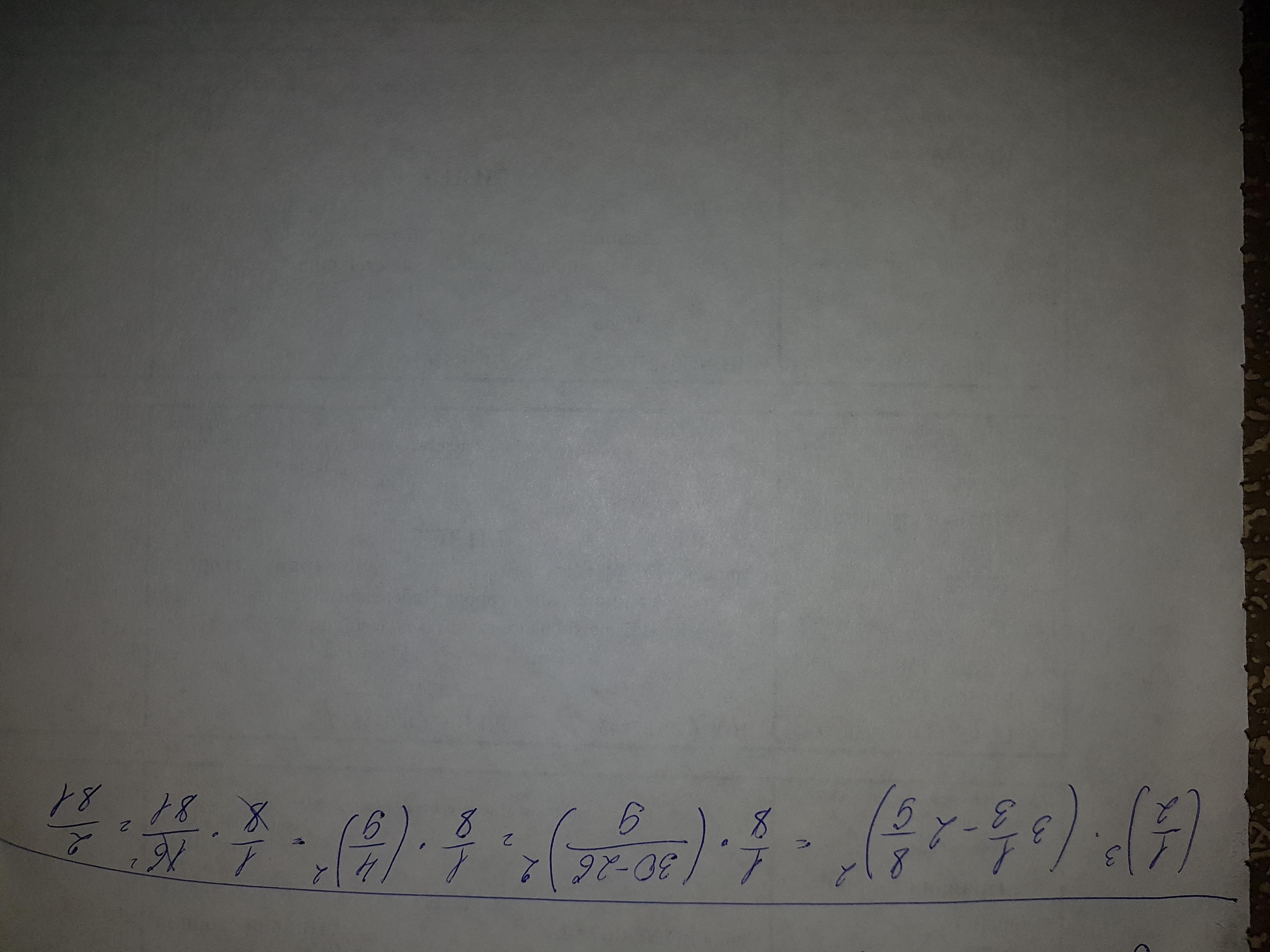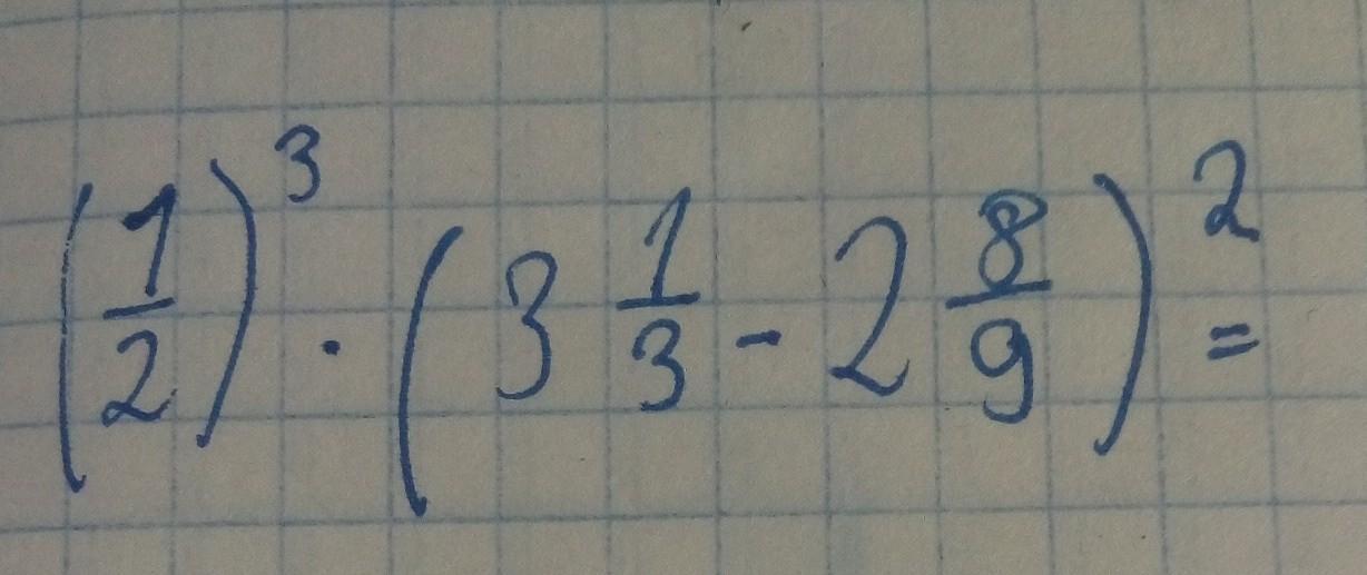 (1/2)^3*(3 1/3-2 8/9)^2= 1/8*(10/3 - 26/9)^2= 1/8*(4/9)^2=1/8*16/81=2/81