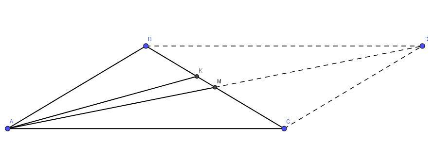 Так как АМ - медиана, то BM = CM отсюда CM = BK + KM.