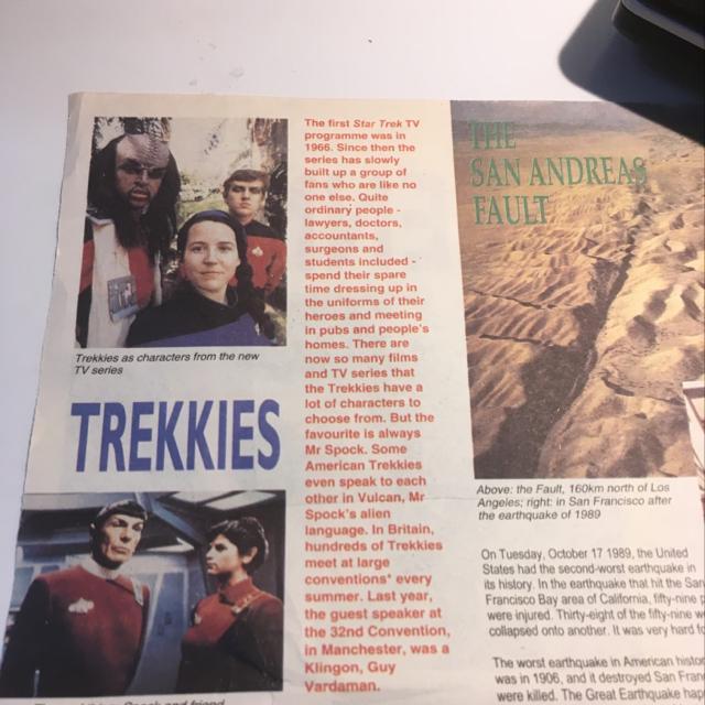 Первая телевизионная программа «Звездный путь» в 1965 году. С тех пор сериал постепенно создал группу альтов, которые больше никого не освобождают. Совершенно обычные люди, юристы, врачи, бухгалтеры, хирурги и студенты проводят свое свободное время, переодеваясь в униформы героев и встречаясь в пабах и домах людей. Сейчас существует так много фильмов и сериалов6, что в Trekkies есть из чего выбирать персонажей , Но фаворитом всегда является мистер Спок. Некоторые американские трекки даже разговаривают друг с другом на вулканском языке Аллена. В Великобритании сотни Trekkies встречаются на больших собраниях каждое лето. В прошлом году приглашенным докладчиком на 32-м конгрессе в Манчестере был клингон Гай Вардаман