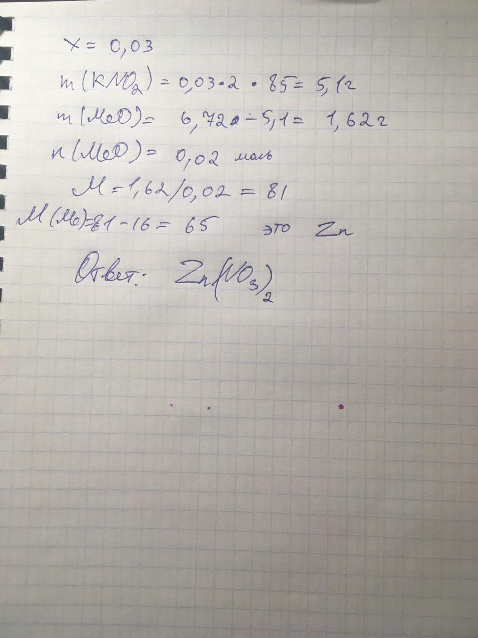При прокаливании смеси нитрата калия с нитратом металла (ст.о. +2, в ряду напряжений находится между Mg и Cu) образовалось